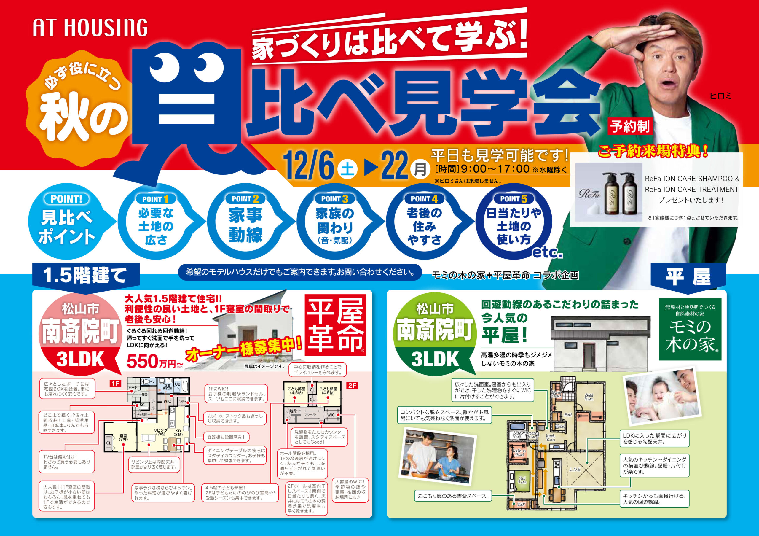 松山市南斎院町にて平屋と1.5階建てがどちらも見れる見学会開催!!