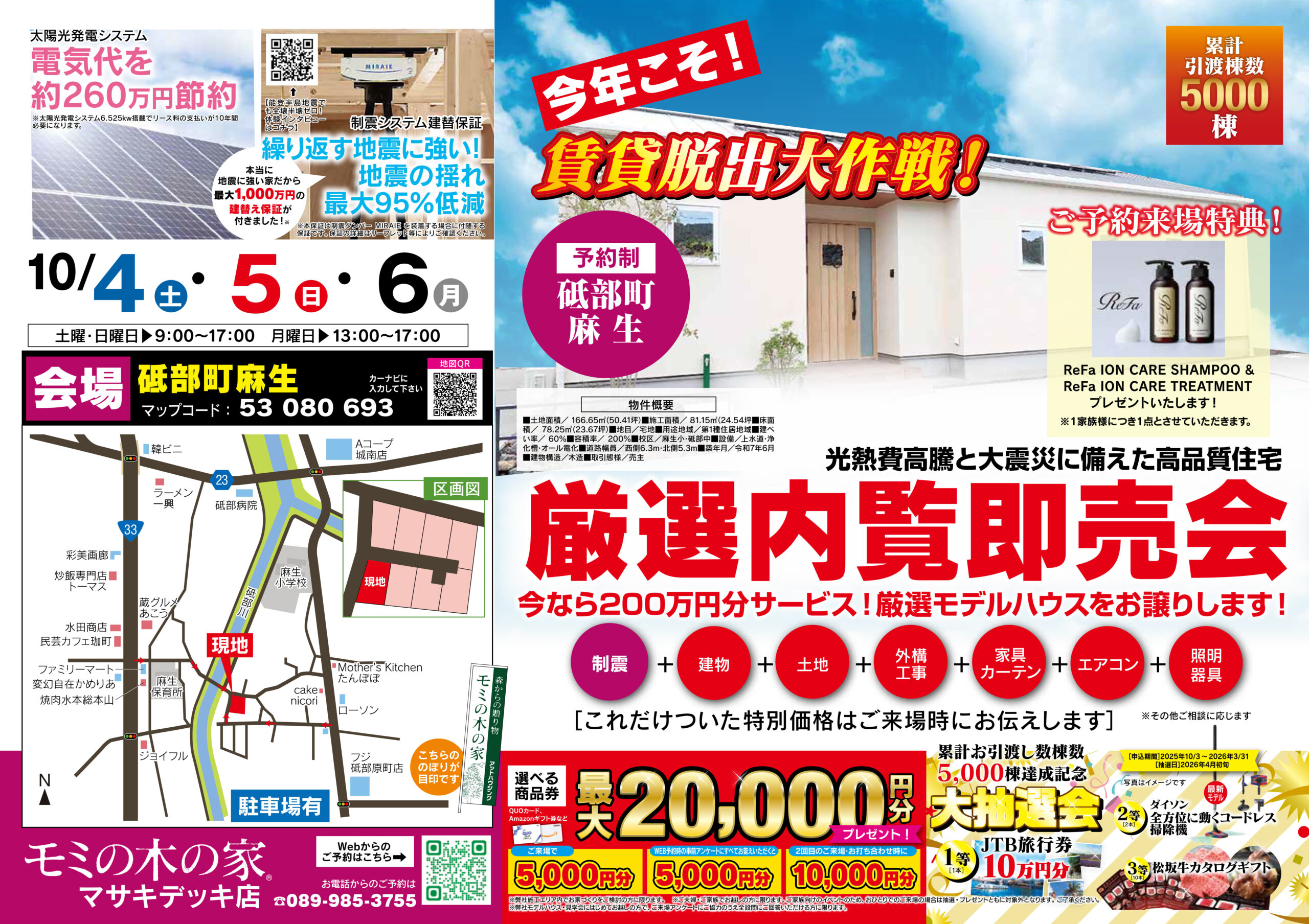 砥部町麻生「モミの木の家」平屋モデルハウス 内覧即売会を開催!
