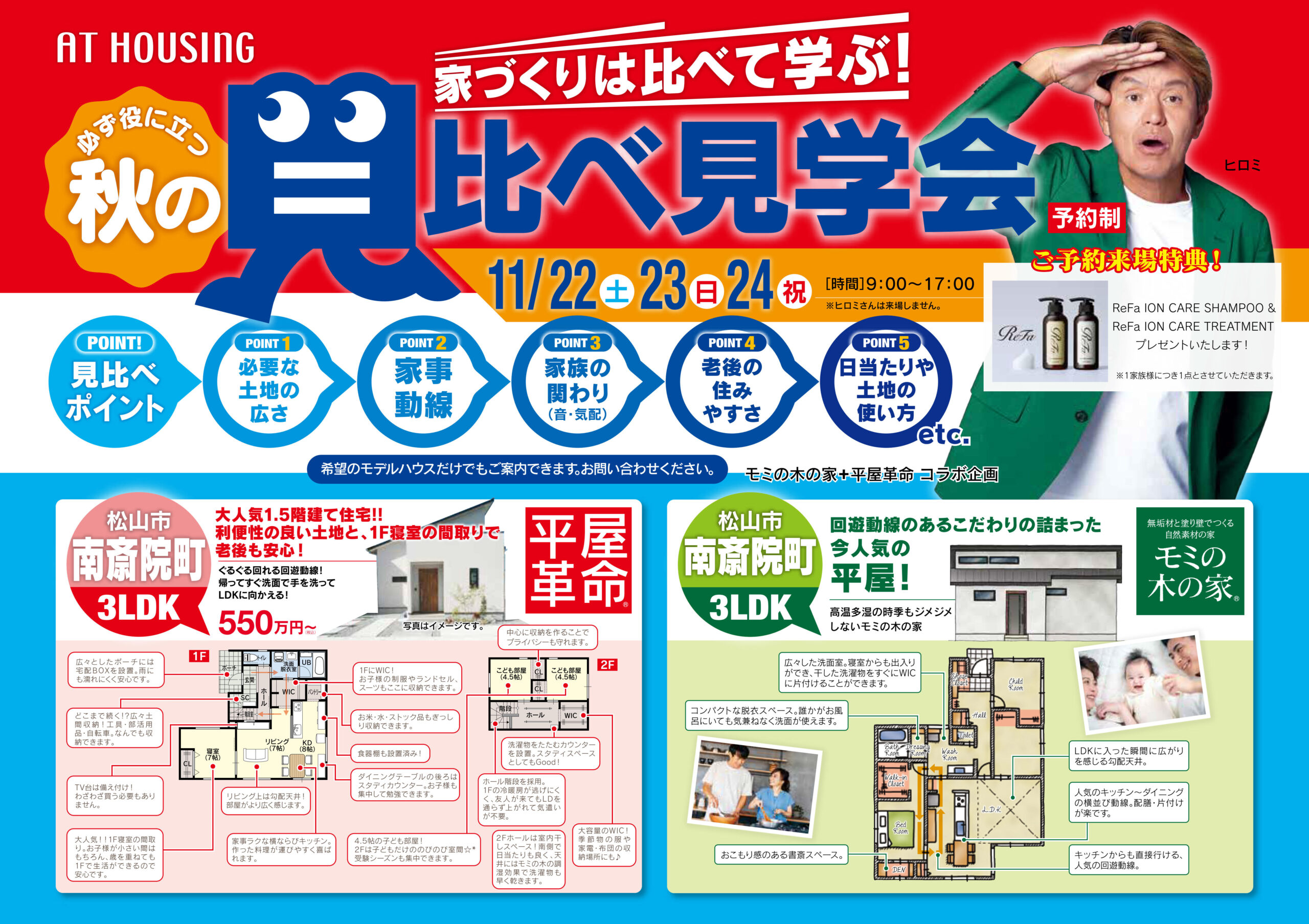 松山市南斎院町にて平屋と1.5階建てがどちらも見れる見学会開催!!