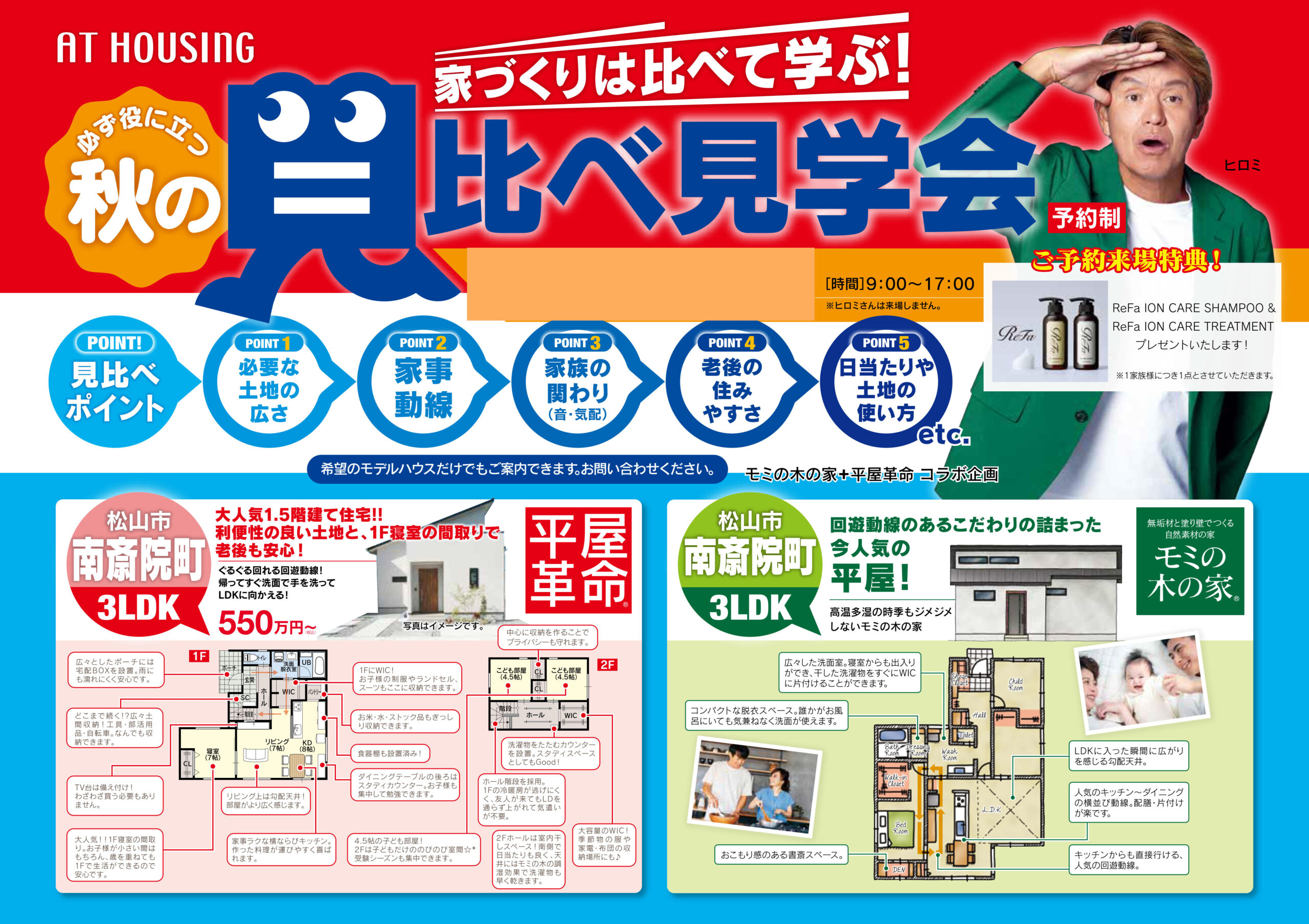 松山市南斎院町にて平屋と1.5階建てがどちらも見れる見学会開催!!
